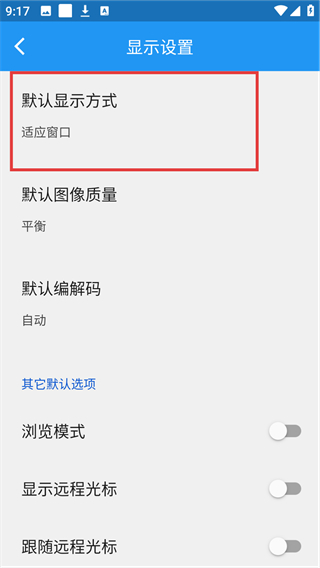 3、在显示设置页面点击【默认显示方式】选项,就能弹出显示方式的选择弹窗,更换显示模式啦。