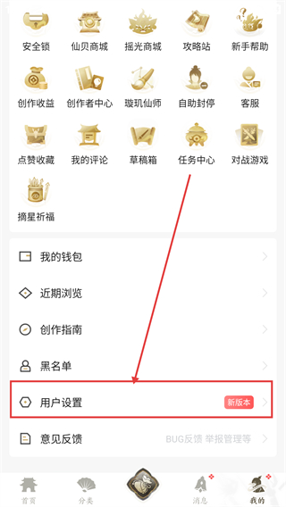 1、在应用的“我的”页面,点击【用户设置】,可进入设置界面,准备进行账号相关的操作啦。
