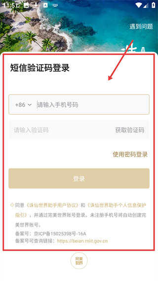 4、进入短信验证码登录界面后,输入手机号码并获取验证码,填写后即可完成新账号的登录哦。