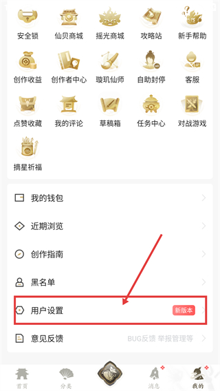 1、在我的页面,点【用户设置】,可进入设置界面,管理账号相关的配置项哦。