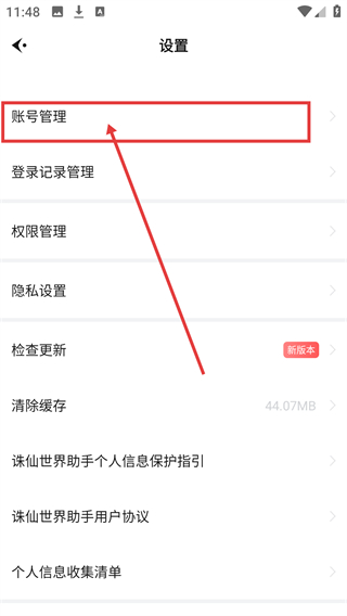 2、进入设置页后,点【账号管理】,能进入账号相关的操作界面,处理账号事务啦。
