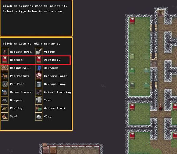 2、利用区域划分功能,可以指定两种休息区域——个人房间与宿舍。