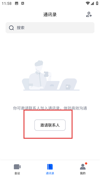 3、在通讯录页面点击【邀请联系人】按钮,就能邀请好友加入通讯录,方便后续快速发起会议哦。