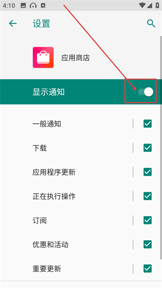 4、在通知设置页点【显示通知】的开关,能开启或关闭应用商店的通知提醒,按需调整就好啦。