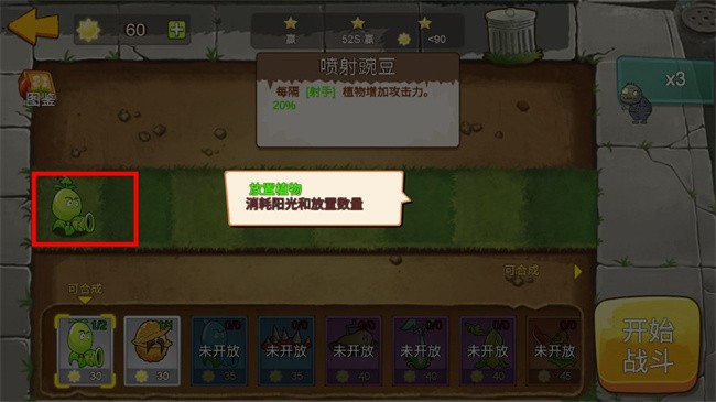 3.放置植物会消耗阳光和放置数量