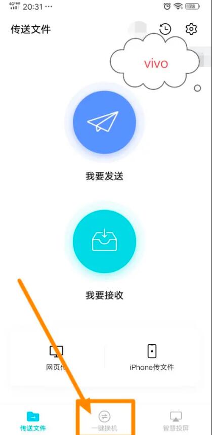 3、同样打开vivo手机的“互传”,进入到“一键换机”的页面;