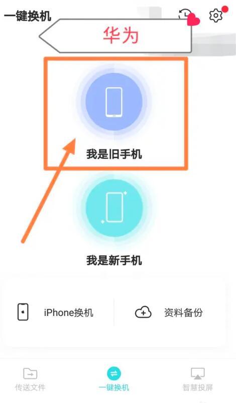 4、接着在华为手机的“一键换机”中选择“我是旧手机”,此时页面会弹出一个相应的二维码;