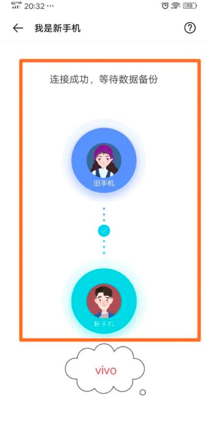 5、回到vivo手机的“一键换机”中选择“我是新手机”,接着扫描华为手机中的二维码,如连接成功,vivo手机会弹出连接成功的页面,如下图所示;