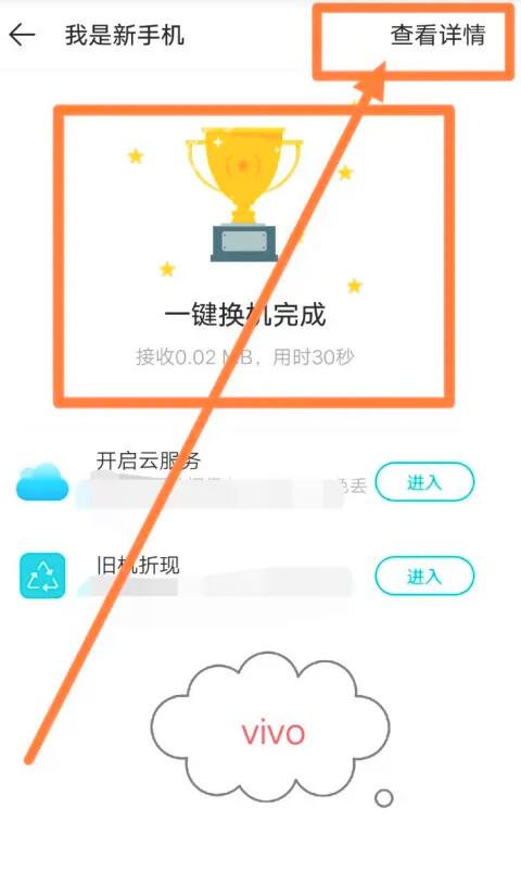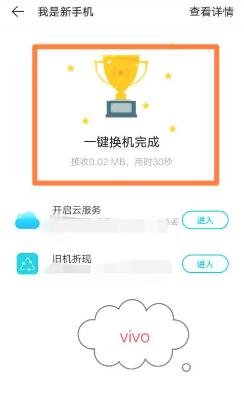 7、当文件传输成功,华为手机与vivo手机的显示如下图所示,可在vivo手机的右上角点击“查看详情”,即可查看到相应的传输数据。
