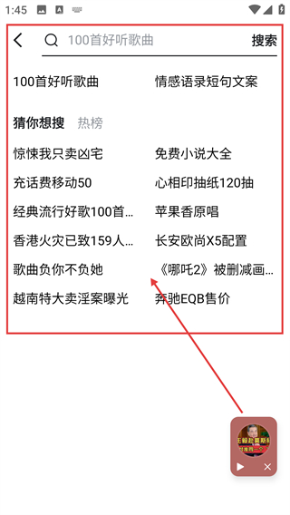 2、进入搜索页后,能看到猜你想搜等推荐内容,确认关键词后点搜索就能获取结果哦。