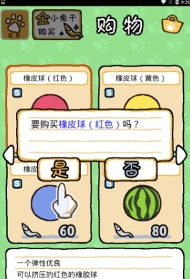 5.进了购物界面,找那个红色的皮球,用普通小鱼干就能买。
