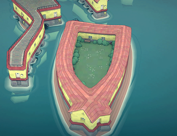 花园/田野内将一个高架部件连接到更高的建筑物上,可使一栋2个空间高度及以上的相同颜色的建筑物触发石墙。