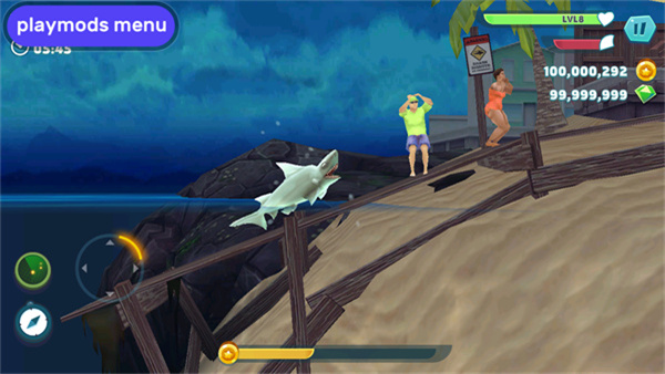 2、通过不断的猎杀和进化,帮助鲨鱼提升等级,解锁新的能力和外观,体验成长的乐趣,感受鲨鱼不断进化的快感。