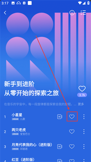 2、进入曲谱列表后,找到目标曲目(比如【小星星】),点击右侧的心形按钮,就能将这首曲谱收藏起来哦。