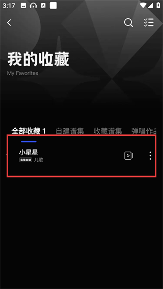 4、在“我的收藏”页面,能看到已收藏的曲谱(比如【小星星】),后续可直接从这里选择曲谱进行弹奏哦。
