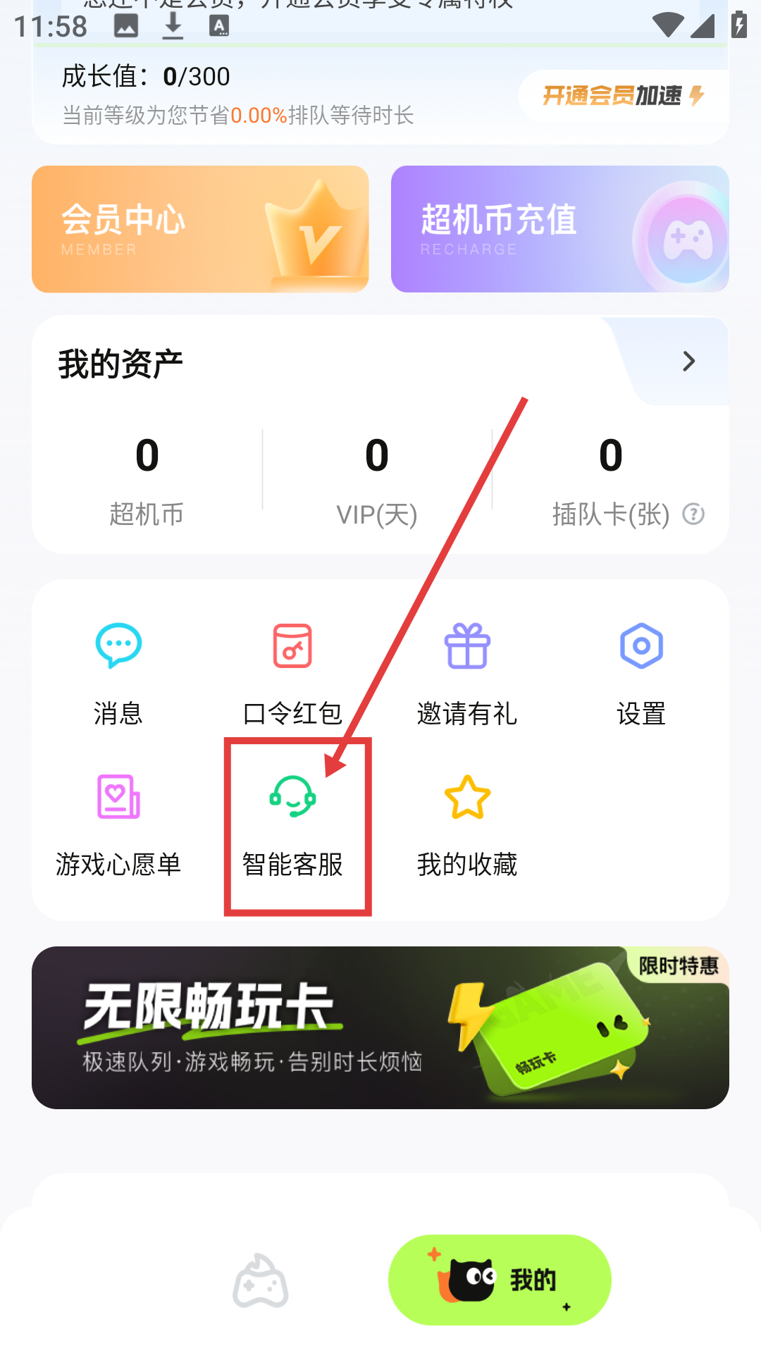 2、进入个人中心页面后,点击【智能客服】,可进入客服中心页面,准备输入问题哦。