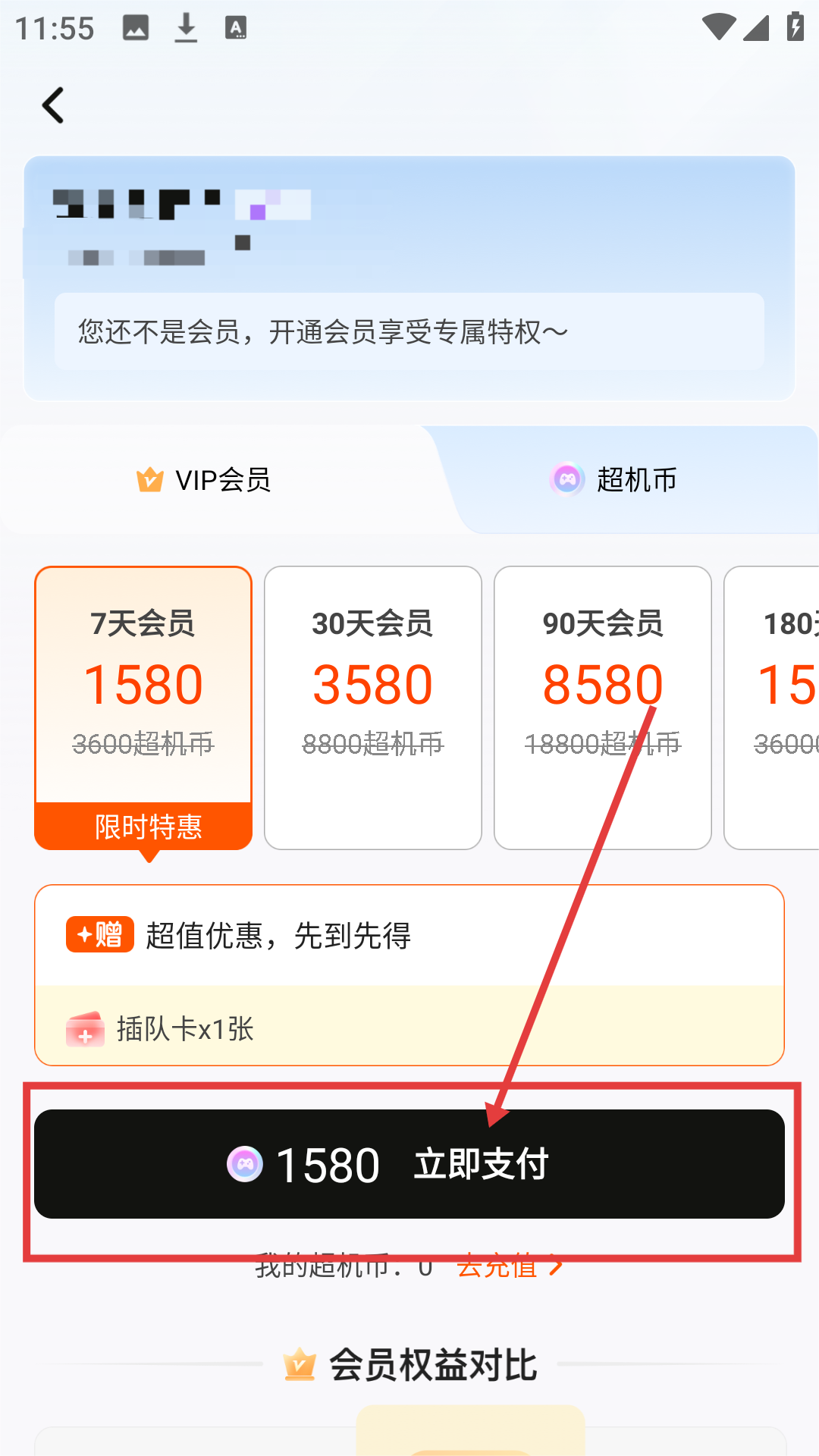 3、在会员页面,选择会员类型后点【立即支付】,可进入支付流程呢。