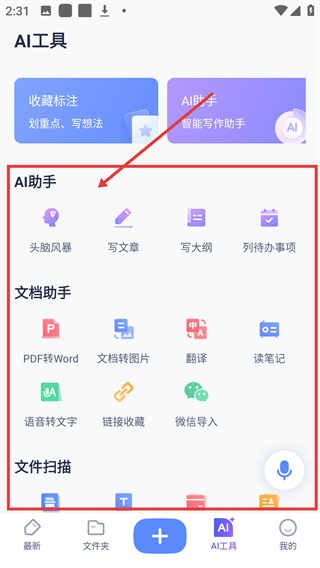4、各种使用精彩的笔记模板使记录更加便捷,文档扫描、文字笔记、手写笔记、图片笔记等多种方式可随时选择记录。