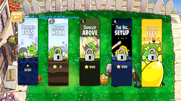 2、游戏有很多有趣的关卡,类似于愤怒的小鸟,所有前面的僵尸猪都被淘汰了,随着游戏难度的逐渐增加。
