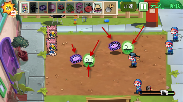 2、特色无尽模式为玩家提供了精彩挑战,各类型的僵尸都会出现的,合理布阵让玩家可以感受最刺激的精彩战斗。