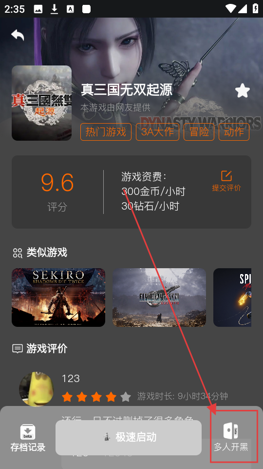 2、在游戏详情页点击【多人开黑】,就能进入多人开黑界面,开启开黑之旅啦。