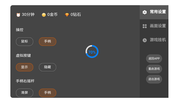 2、游戏中的界面按键模拟的手柄操作。