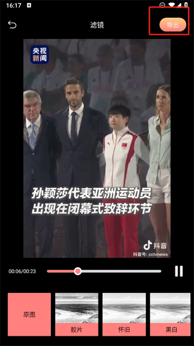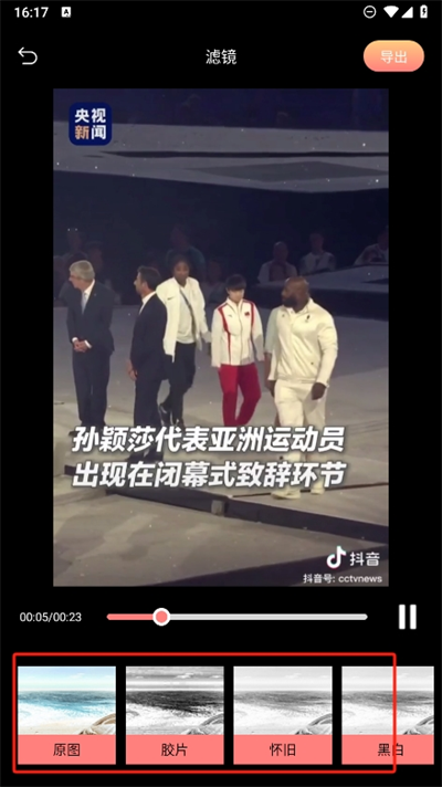 4、制作好自己的视频滤镜和滤镜的强度后,直接点击打出就可以将自己的视频进行保存。