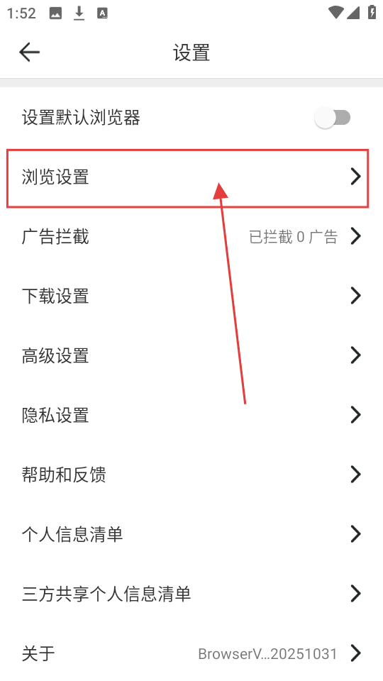 2、进入设置页面后,点击【浏览设置】,可进入浏览设置页面哦。