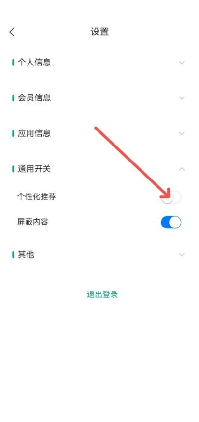 3、在打开的设置页面中,通用开关栏,点击关闭个性化推荐开关按钮,就可以关闭推荐漫画