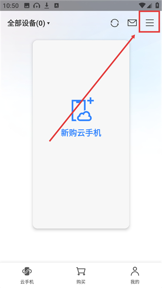 1、点击页面右上角的菜单按钮,就能展开功能菜单,找到各类云手机相关的操作选项啦。