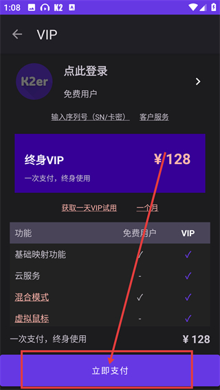 3、在VIP页选【终身VIP】套餐,点【立即支付】按钮完成付款,就能解锁全部VIP功能啦。