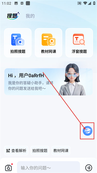 3、开启浮窗后回到首页,点桌面悬浮的搜题按钮,就能进入截屏搜题的操作界面啦。