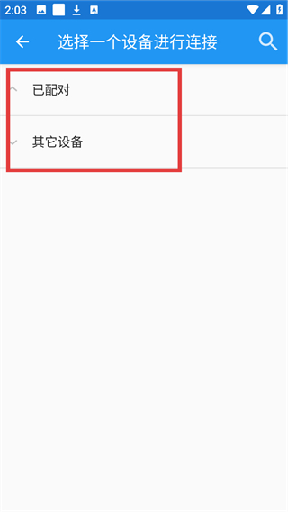 2、进入设备选择页后,能看到【已配对】和【其它设备】分类,选对应分类找要连的设备哦。