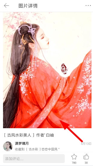 2、而在打开图片的详情界面之后,点击图片进入全屏观看的页面,大家就可以保存图片设置手机壁纸了!
