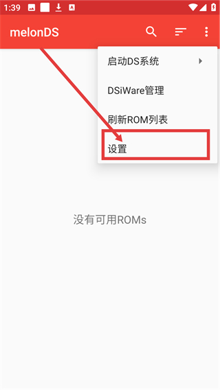 1、在【melonDS】主界面点击右上角菜单,选择【设置】选项,就能进入配置页面调整模拟器参数啦。
