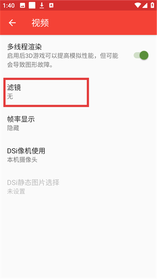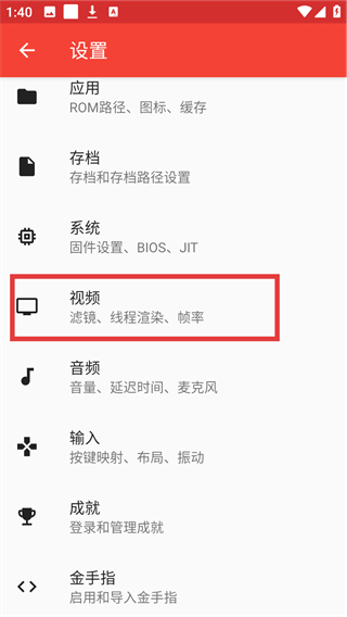 2、进入设置页面后点击【视频】选项,就能进入视频配置界面,调整滤镜-帧率等显示相关参数哦。