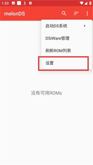 1、在【melonDS】主界面点右上角三点按钮,就能展开功能菜单,查看各类操作选项啦。
