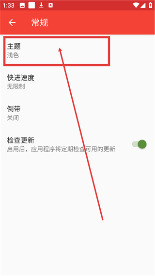 3、在设置页选【常规】选项,就能进入常规设置界面,调整主题、快进速度等基础配置啦。