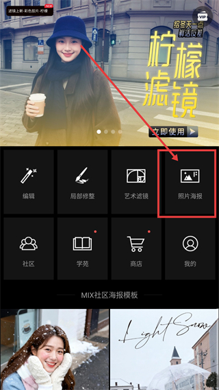 1、进入主界面后点击【照片海报】功能,就能进入海报制作的操作页面,开启图片美化创作啦。