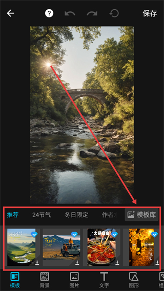 3、关闭演示后点击下方【模板库】按钮,就能进入模板选择界面,挑选喜欢的海报模板啦。
