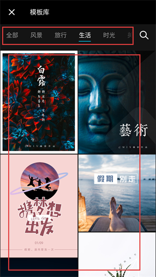 4、在模板库可选择【生活】等分类,找到对应风格的海报模板,直接应用到图片上美化内容哦。