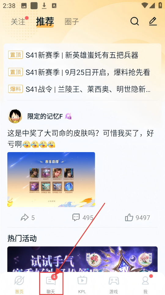 1、在首页时,点击底部的【聊天】,就能轻松进入聊天页面,可方便啦。