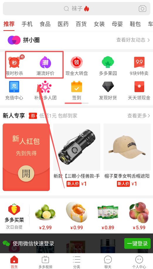 3、购物时多关注首页的“限时秒杀”“9块9特卖”和“新人专享”板块,里面常有超低价商品,新人还能领红包和优惠券,先到先得挺划算的。