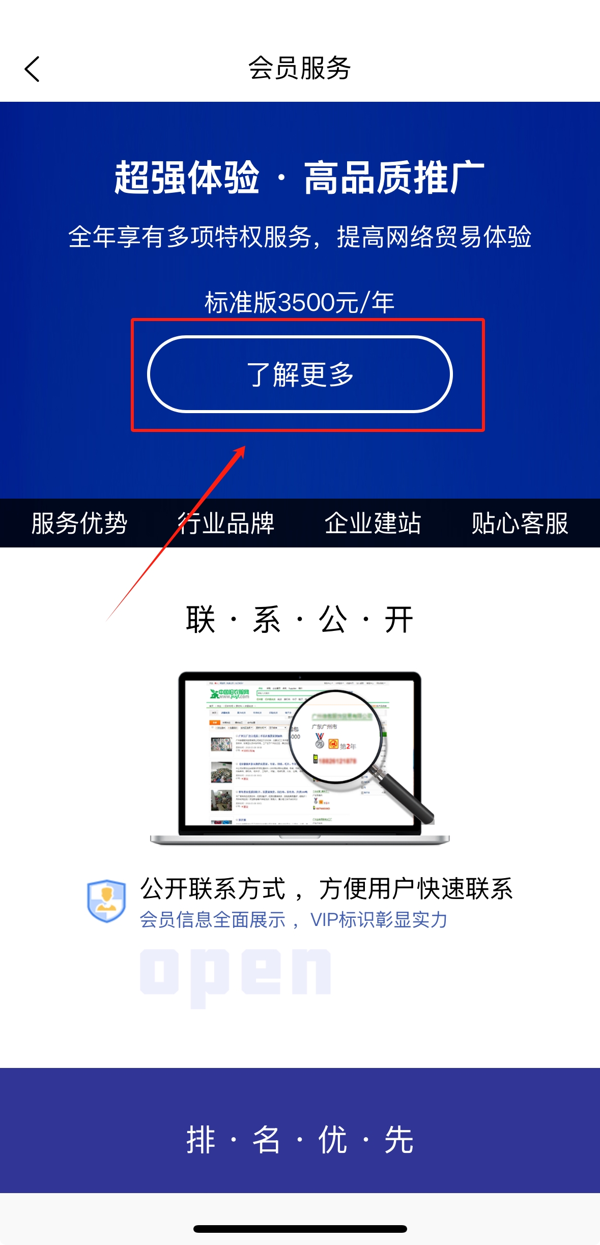 3、会员管理功能,查看账户等级与权益。购买增值服务套餐。管理企业认证信息。参与会员专属活动。