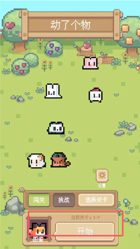 1、进入游戏后,玩家将看到各种被困在木箱中的小动物,需要通过消除操作来解救它们。