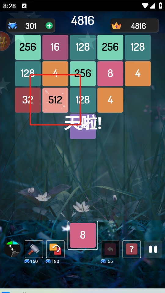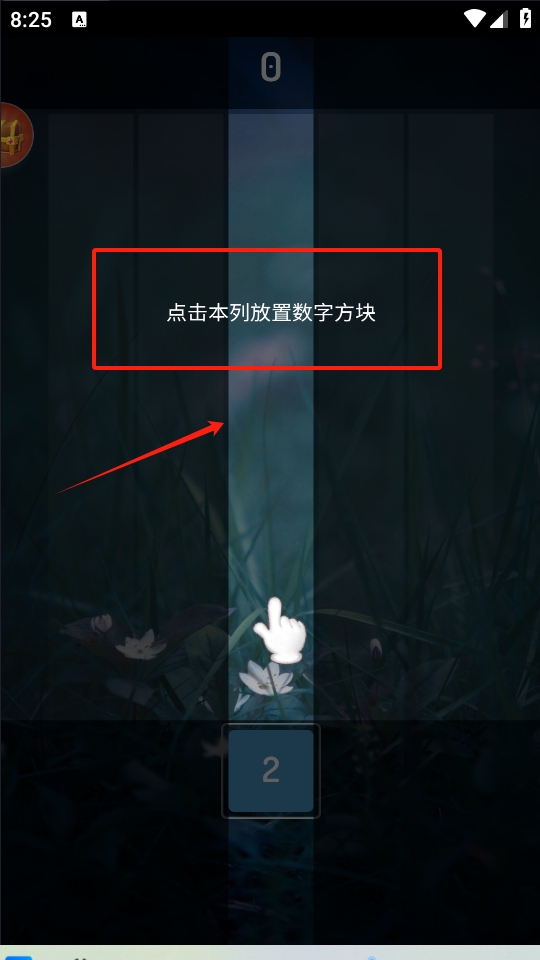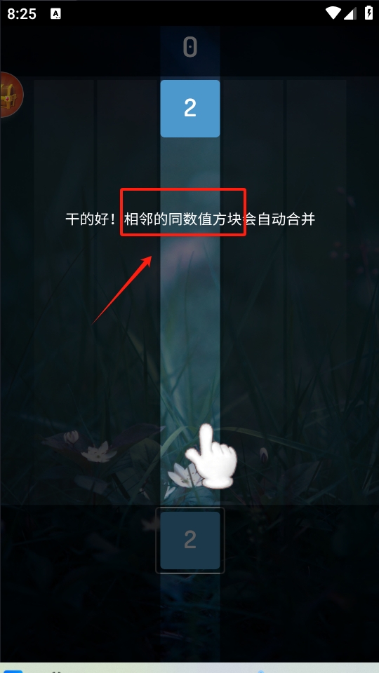 2、选择放置方块的位置,两个相同的数字可以合成。