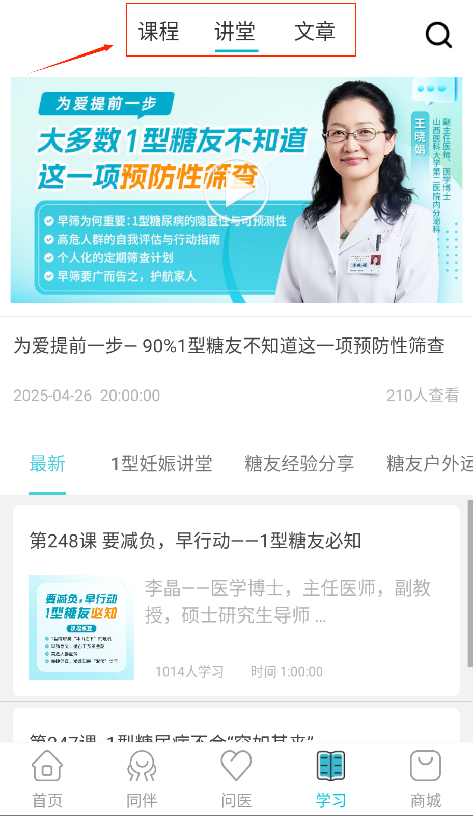 2、知识科普平台,持续更新疾病管理科普内容,按病程阶段与知识类型分类整理,支持收藏与分享功能,重要知识点设置反复强化学习机制。