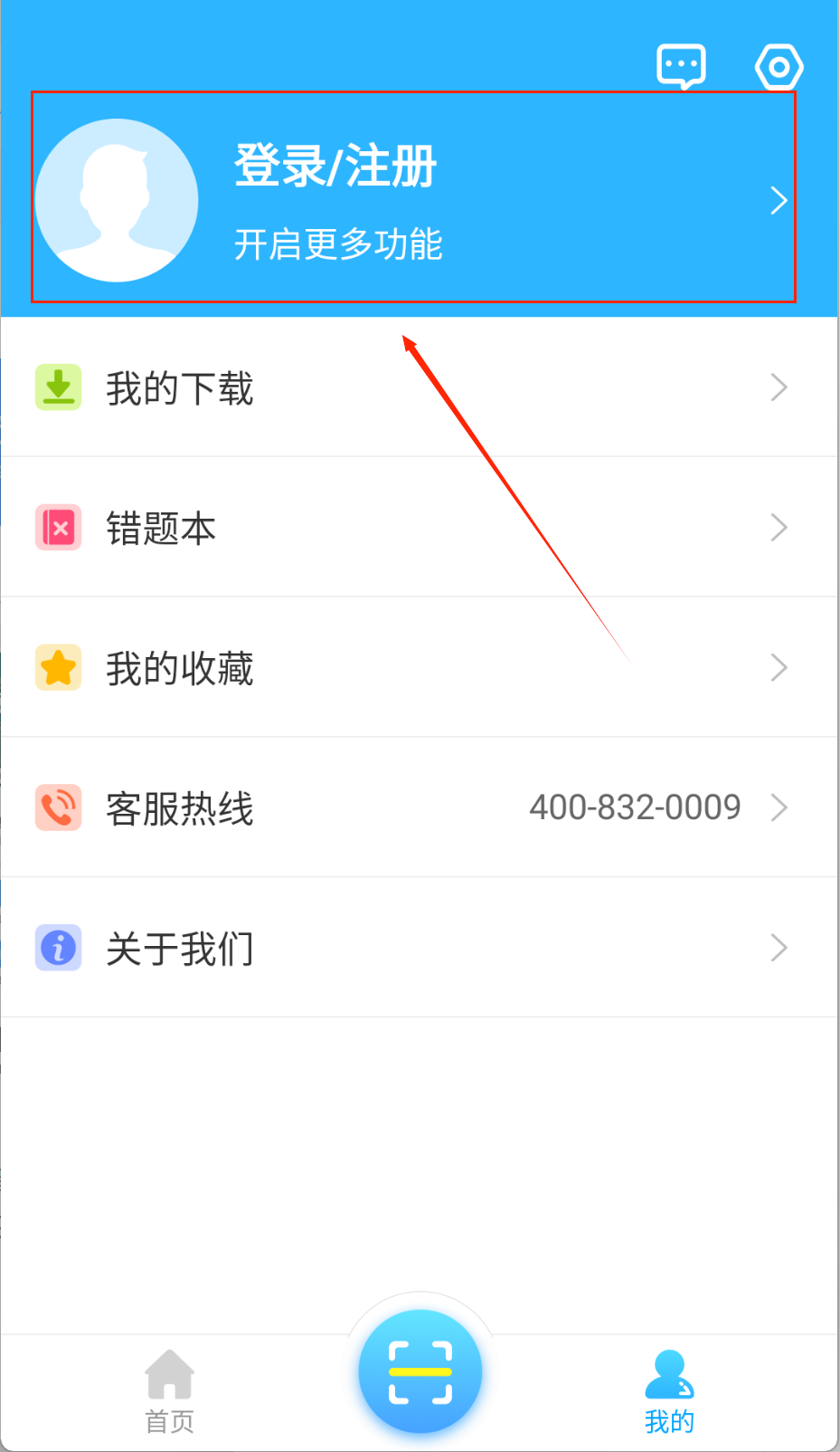 1、打开app后点击右下角"我的"完成注册登录,这样就能使用错题本和收藏功能,随时查看学习记录哦。