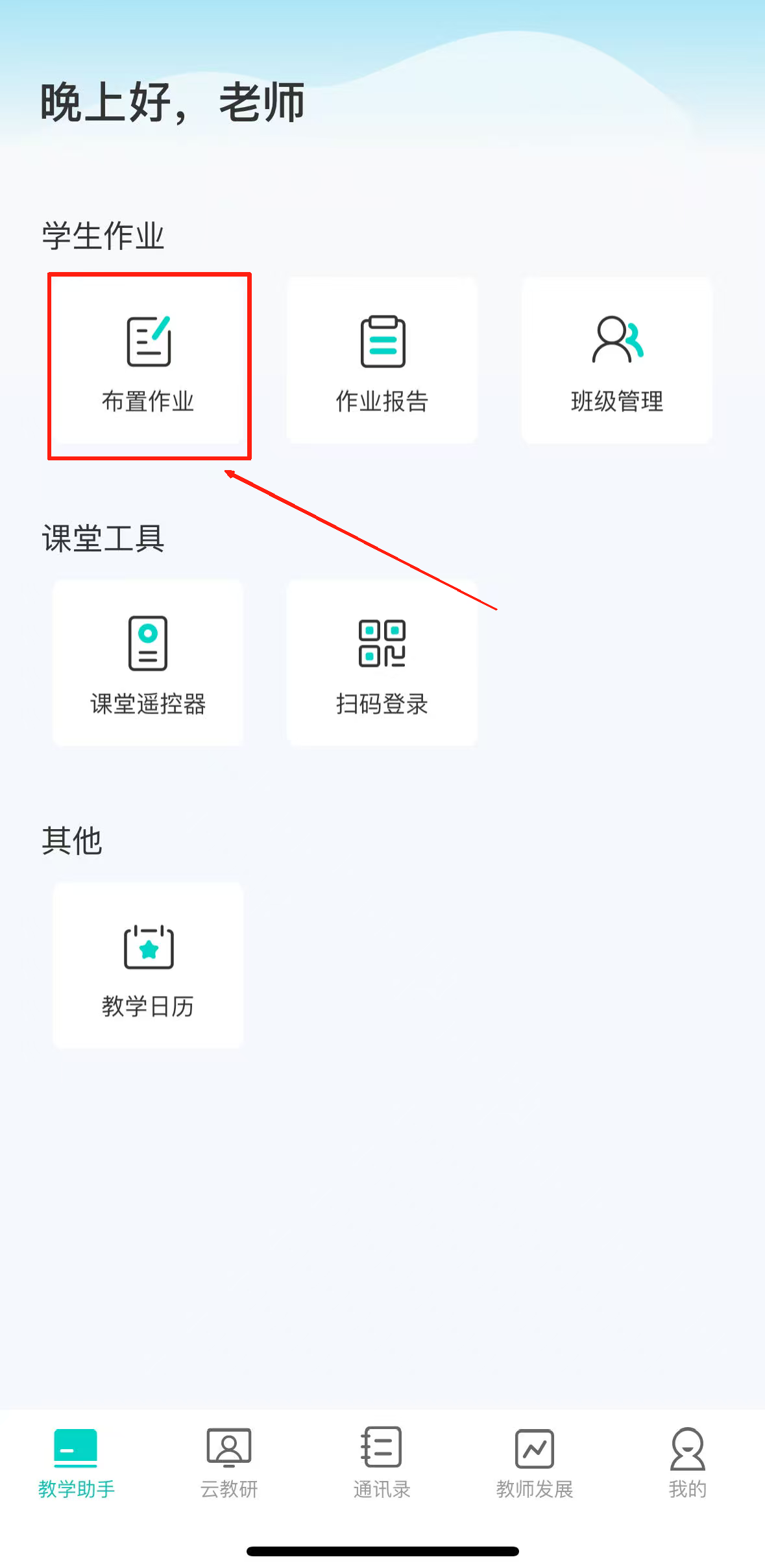 1、打开app进入首页,在顶部"学生作业"板块点击"布置作业",选择班级和题目后设置截止时间,就能一键发布数学练习啦。