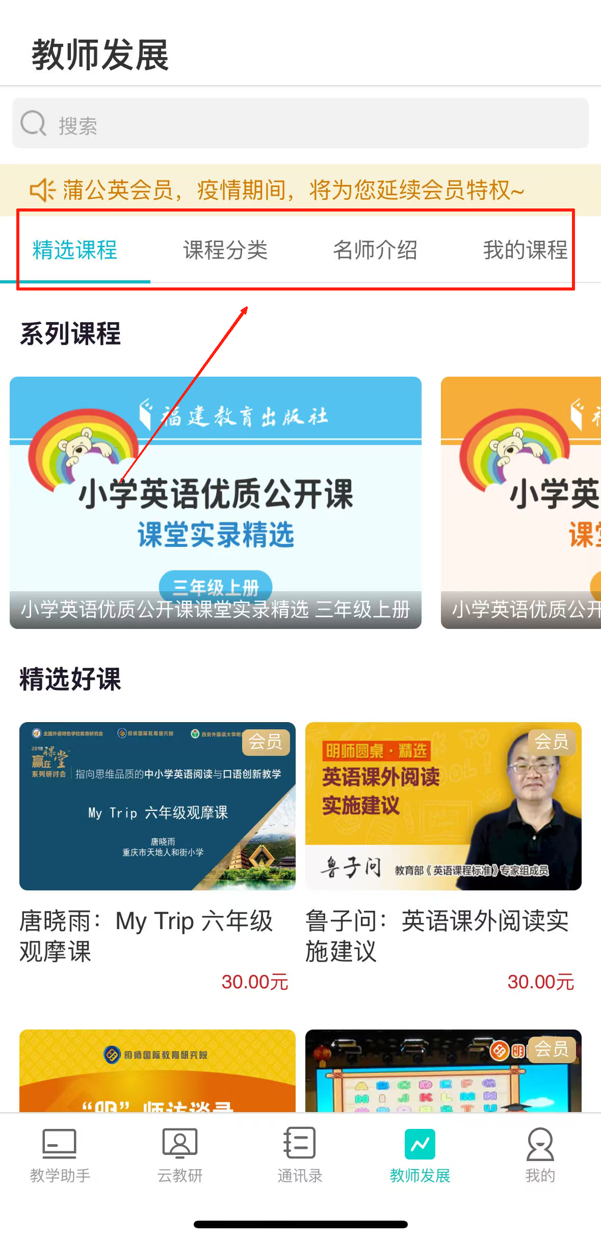 3、在"教师发展"板块查找数学资源,筛选年级和版本后,优质课件和公开课视频都能直接加入"我的课程"使用呢。